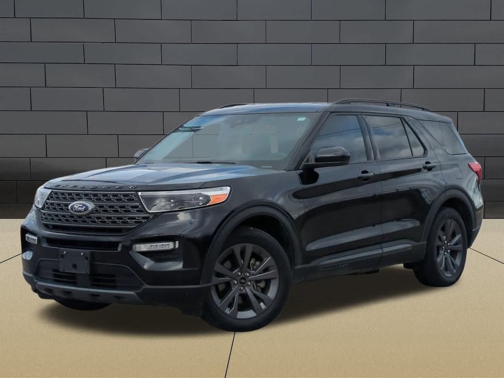 EQUIPMENT GROUP 202A Heated Steering Wheel, SecuriCode Keyless Entry Keypad, LED Fog Lamps, silver-painted front skid plate elements, Remote Start System, XLT SPORT APPEARANCE PACKAGE carbonized gray-painted grille bars and mesh insert, liftgate applique, lower body side cladding insert, skid plate elements, carbonized gray EXPLORER badge on hood, stretch diamond instrument panel appliques, ebony/light slate seats w/medium slate contrast stitching in all rows, unique light slate door-trim panel insert w/contrast stitching and sideview mirrors w/gloss black caps, Wheels: 20 10-Spoke Carbonized Gray-Painted, Tires: P255/55R20 AS BSW, Dual Chrome Exhaust Tips, TRANSMISSION: 10-SPEED AUTOMATIC (STD). 2023 Ford Explorer with Agate Black exterior and Ebony/Light Slate interior features a 4 Cylinder Engine with 300 HP at 5500 RPM*.