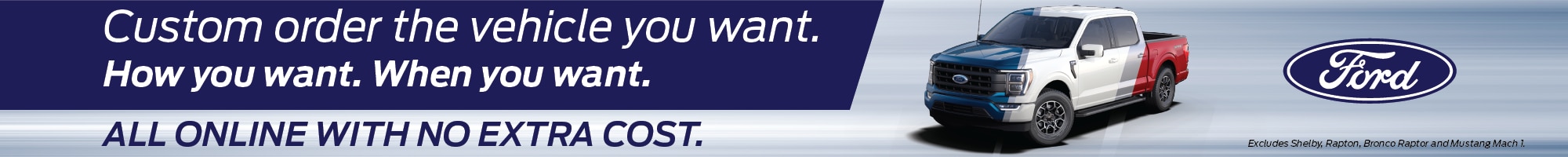 Submit your request by clicking "Start Your Custom Order" and include vehicle preferences in the comments section. A dealership representative will contact you to  verify your desired vehicle, explore potential incoming stock and then arrange to submit your order to Ford.