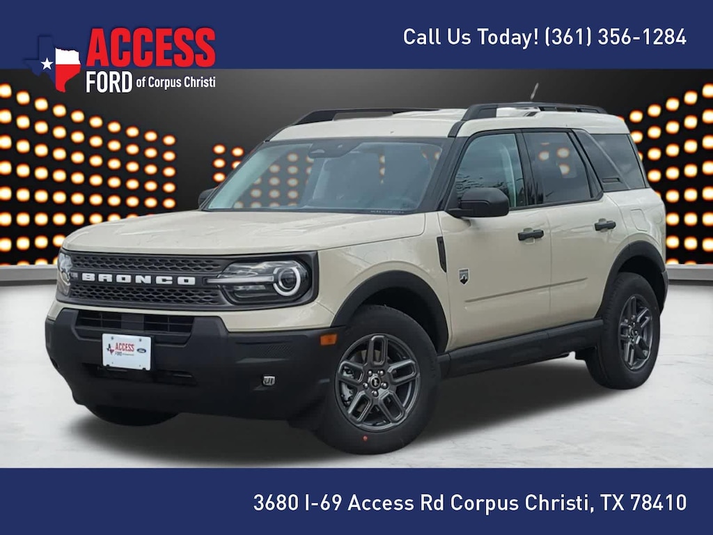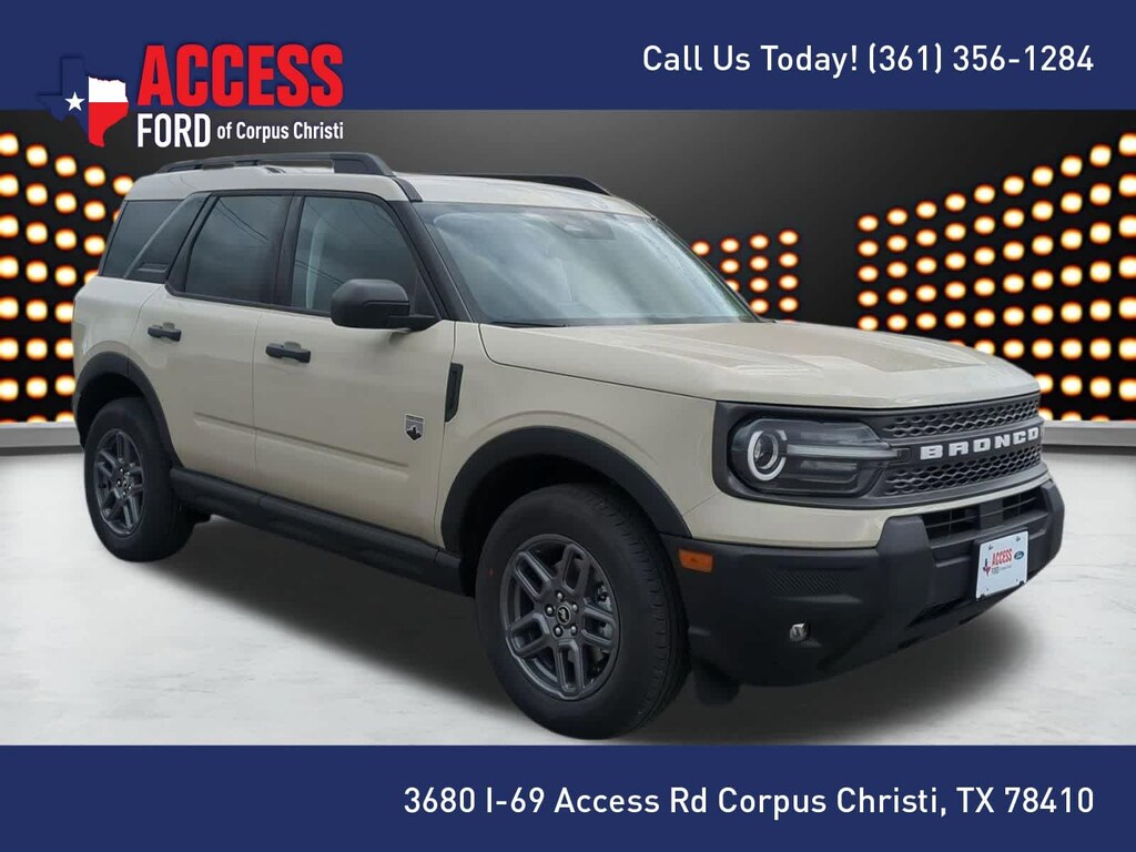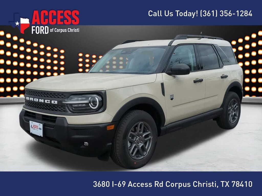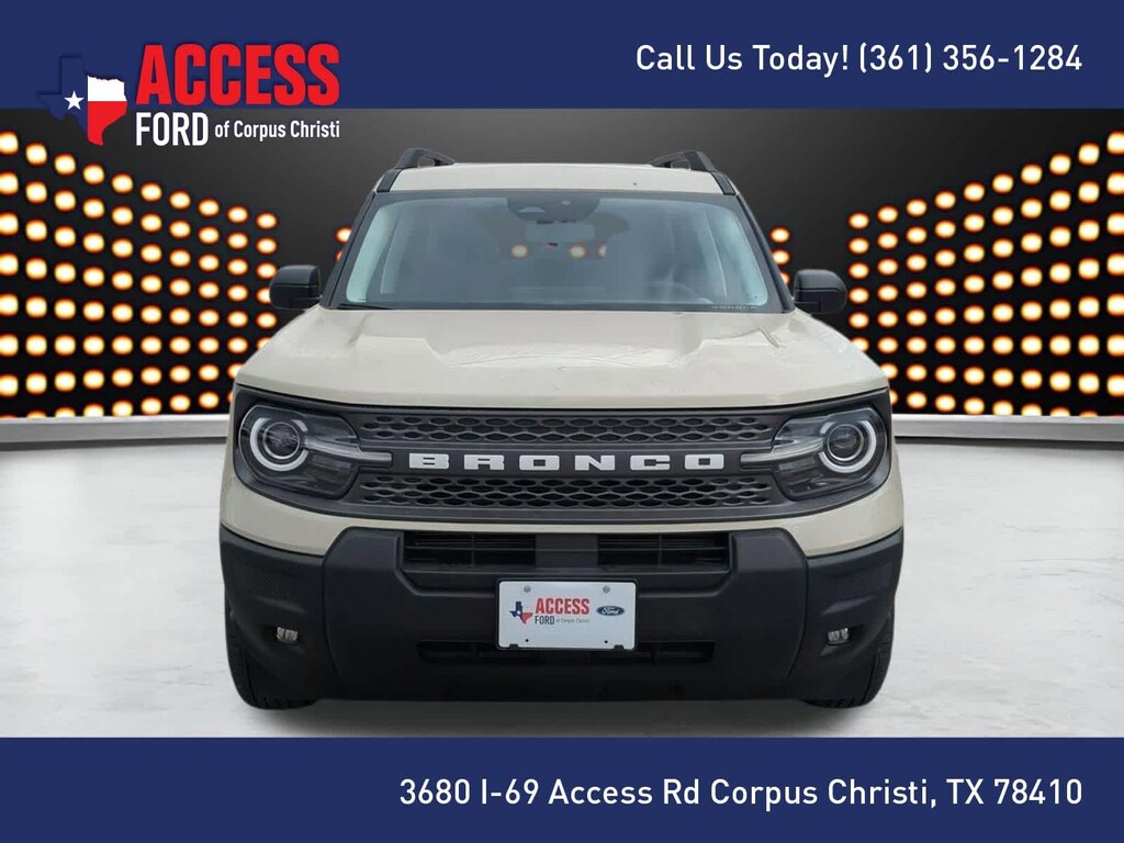 CONVENIENCE PACKAGE Heated 8-Way Power Drivers Seat, (Fore/aft, up/down, recline, lumbar), Front Driver/Passenger Seat Back Map Pockets, Universal Garage Door Opener (UGDO), Premium Wrapped Steering Wheel, LED Fog Lamps. 2025 Ford Bronco Sport with Desert Sand exterior and Medium Light Smoked Truffle interior features a 3 Cylinder Engine with 181 HP at 6000 RPM*.