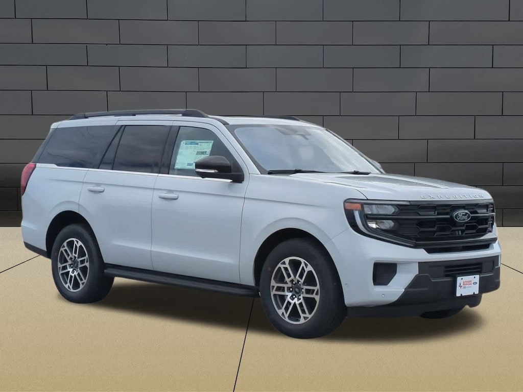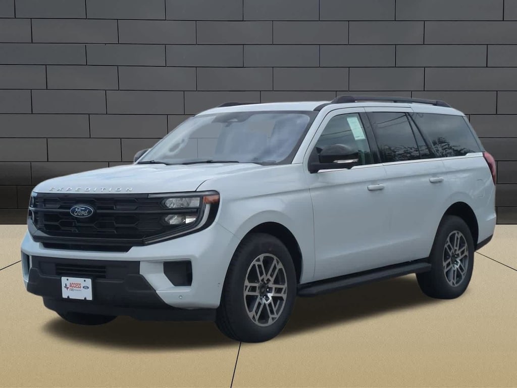 EQUIPMENT GROUP 202A HIGH PACKAGE Ford Split Gate, power upper liftgate and power lower tailgate, Wheels: 20 Carbonized Gray Bright Machined Aluminum, Premium dark tarnish-painted, dark carbonized gray-painted pockets, 360-Degree Zone Lighting, 110V/400W AC Power Outlet, 1 console outlet and one cargo area outlet, BlueCruise Equipped, 90-day trial, Not available to military sales, Universal Garage Door Opener, Power Panoramic Vista Roof w/Power Sunshade, Rain Sensing Wipers, Power Tilt/Telescopic Steering Wheel w/Memory, Memory Driver Seat, Tires: P275/60R20 AS BSW, Ford Co-Pilot360 Active 2.0, Driver State Detection, Intersection Assist, pre-collision assist w/autonomous emergency braking, pedestrian detection, forward collision warning and dynamic brake support, Front Side Laminated. 2025 Ford Expedition with Space Silver exterior and Dark Gray interior features a V6 Cylinder Engine with 400 HP at 5200 RPM*.