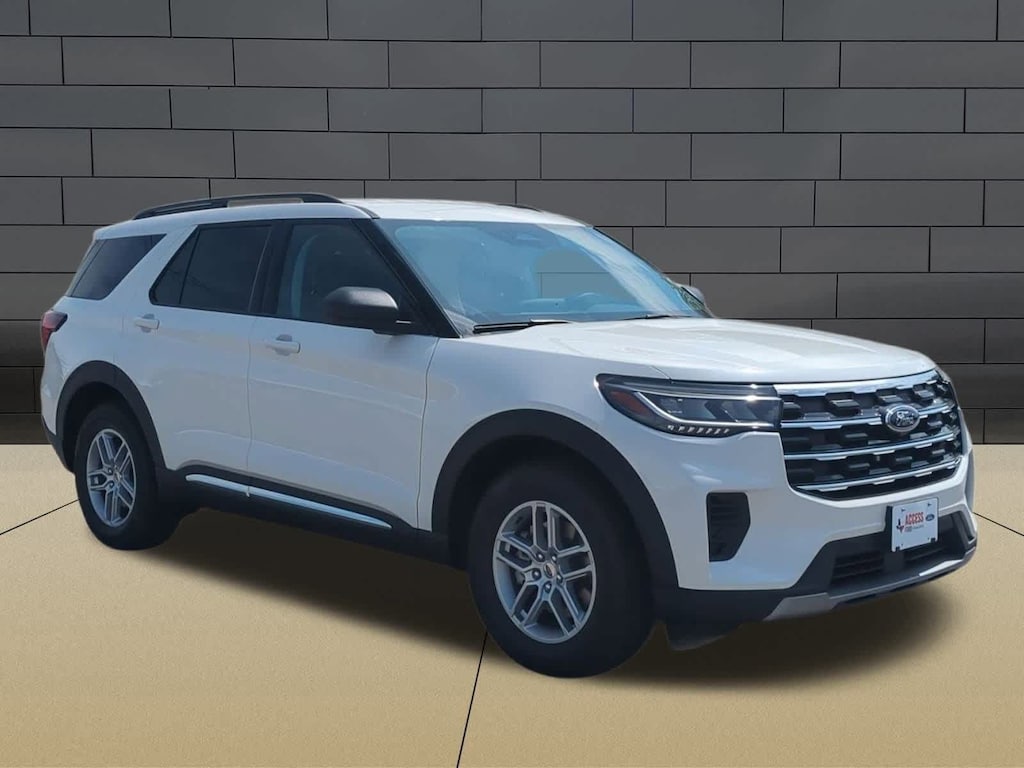 18 SPARE WHEEL & JACK KIT 18 spare tire, TRANSMISSION: 10-SPEED AUTOMATIC (STD). 2025 Ford Explorer with Star White Metallic Tri-Coat exterior and Dark Gray/Onyx interior features a 4 Cylinder Engine with 300 HP at 5500 RPM*.