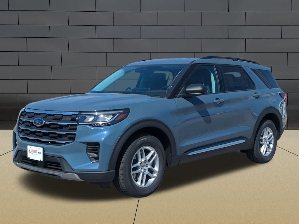 18 SPARE WHEEL & JACK KIT 18 spare tire, TRANSMISSION: 10-SPEED AUTOMATIC (STD). 2025 Ford Explorer with Vapor Blue exterior and Dark Gray/Onyx interior features a 4 Cylinder Engine with 300 HP at 5500 RPM*.