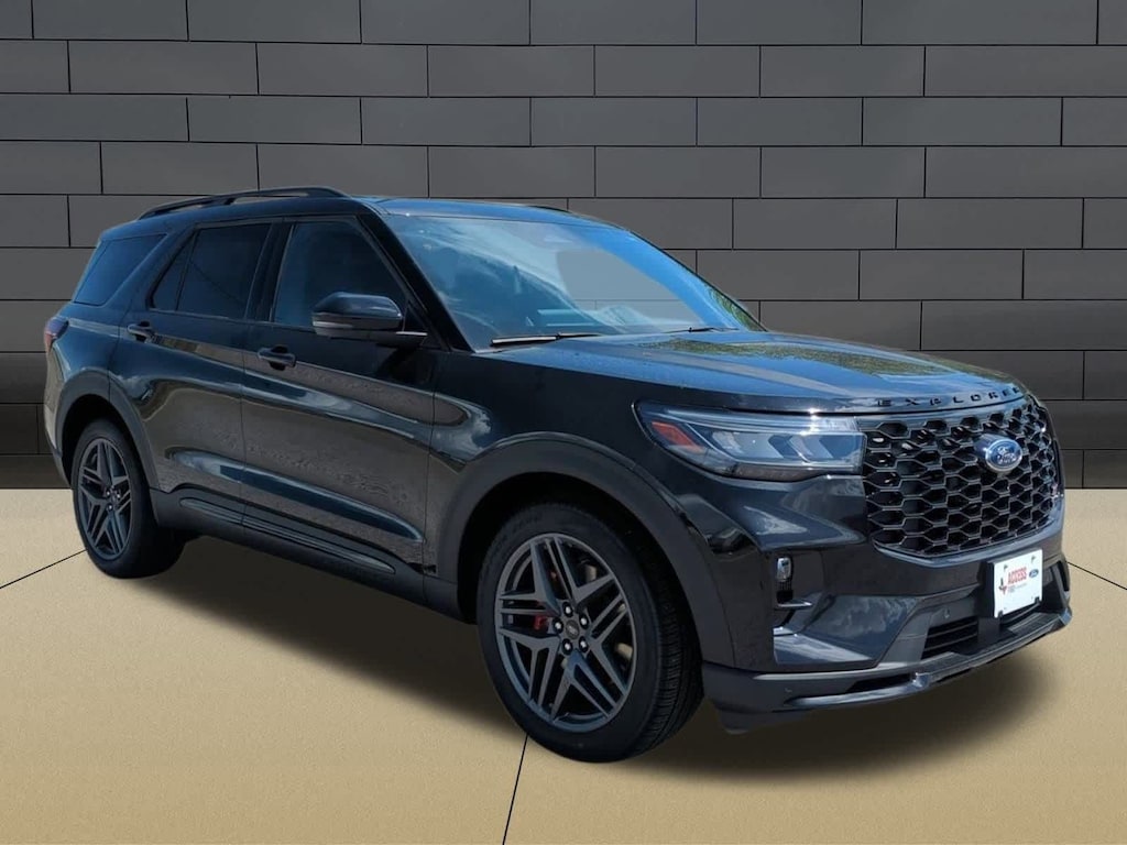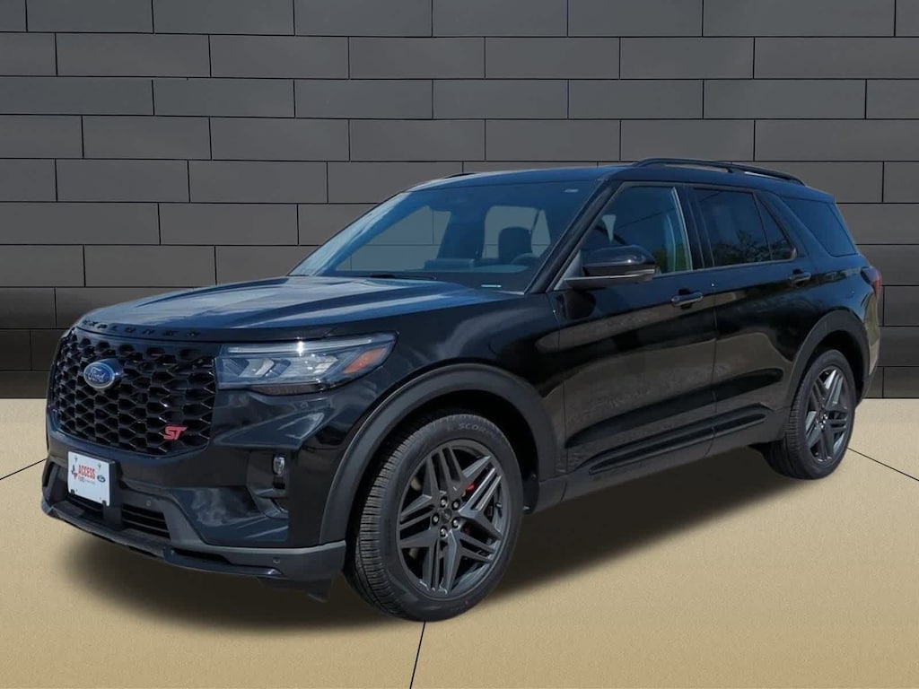 SUN AND SOUND PACKAGE Panoramic Vista Roof w/Power Shade, Multicontour Seats w/Front Active Motion, B&O Sound System by Bang & Olufsen, 980 watt and 14 speakers, TRANSMISSION: 10-SPEED AUTOMATIC SelectShift capability w/paddle shifters (STD). 2025 Ford Explorer with Agate Black exterior and Onyx interior features a V6 Cylinder Engine with 400 HP at 5500 RPM*.
