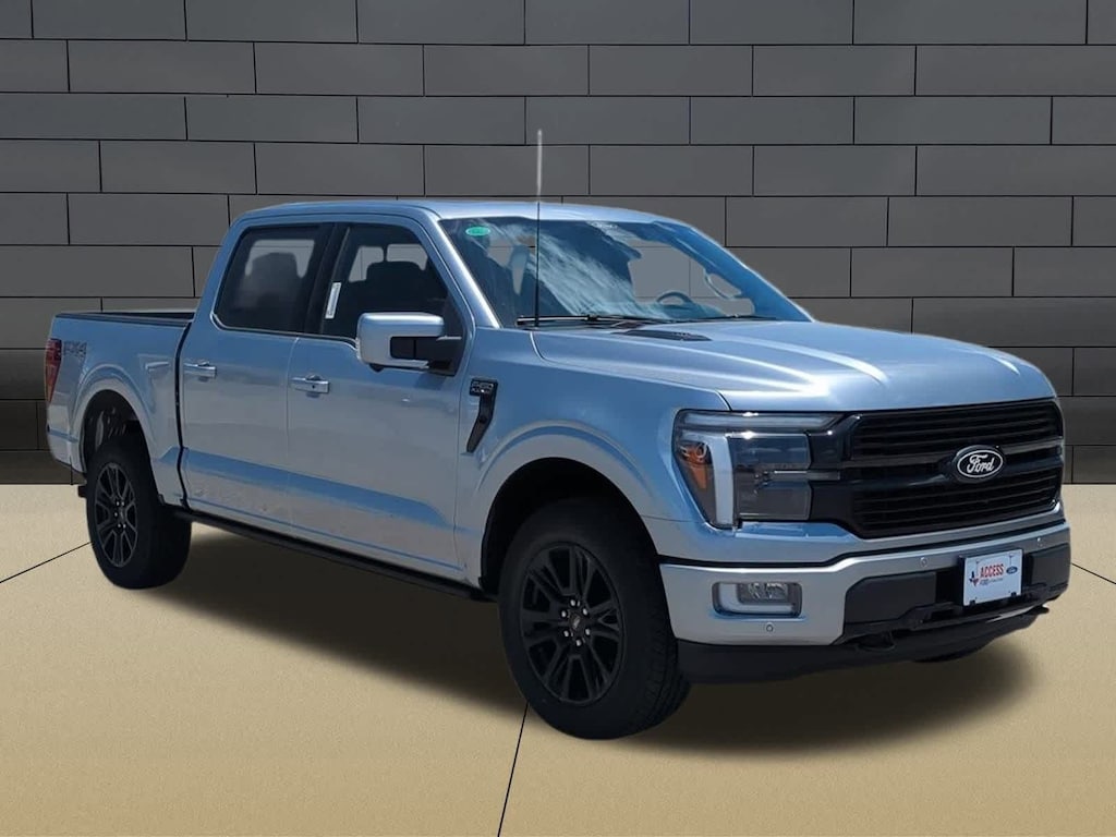EQUIPMENT GROUP 702A HIGH Twin Panel Moonroof, Heads-Up Display, Radio: B&O Unleashed Sound System by Bang & Olufsen, HD Radio and 14 speakers including subwoofer, FX4 OFF-ROAD PACKAGE Off-Road Tuned Front Shock Absorbers, Skid Plates, fuel tank, transfer case and front differential, Monotube Rear Shocks, Rock Crawl Mode, 4x4 FX4 Off-Road Bodyside Decal, Hill Descent Control, Tray Style Floor Liner w/Carpet Mats, TRANSMISSION: ELECTRONIC 10-SPEED AUTOMATIC SelectShift w/progressive range select and selectable drive modes: normal, ECO, sport, tow/haul, slippery, deep snow/sand and mud/rut (STD). 2025 Ford F-150 with Iconic Silver exterior and Black interior features a V6 Cylinder Engine with 400 HP at 6000 RPM*.