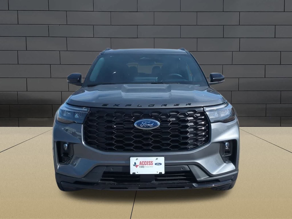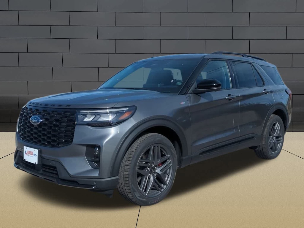 ST-LINE STREET PACK Wheels: 21 Magnetite-Painted Aluminum, Tires: P275/45R21 AS BSW, Performance Brakes, Red Painted Perf Front & Rear Brake Calipers, PREMIUM PACKAGE 110V/150W AC Power Outlet, Replaces the powerpoint port on the rear side of the center floor console, Auto-Dimming Interior Rearview Mirror, Memory Drivers Seat, Manual-Folding Sideview Mirrors, power and heated glass, LED turn signal indicators, security approach lamps, drivers side auto-dimming and driver and passenger side memory, Rain-Sensing Wipers (Front Only), Ambient Lighting, 2nd Row Heated Seats, SECURICODE KEYLESS ENTRY KEYPAD, 18 SPARE WHEEL & JACK KIT 18 spare tire, 2ND ROW CAPTAINS CHAIRS W/E-Z ENTRY & ARMREST E-Z Entry is manually activated, Replaces standard 2nd row 35/30/35 bench seats, TRANSMISSION: 10-SPEED AUTOMATIC (STD). 2026 Ford Explorer with Carbonized Gray exterior and Onyx interior features a 4 Cylinder Engine with 300 HP at 5500 RPM*.