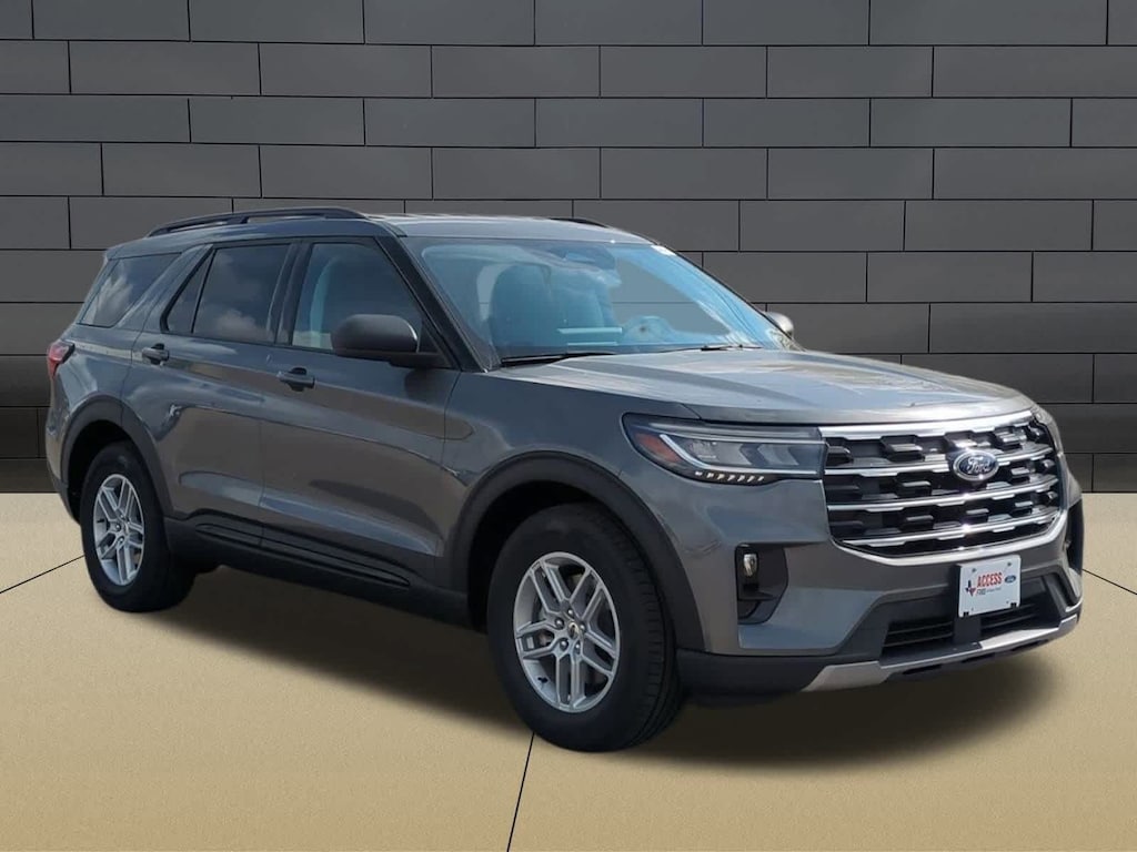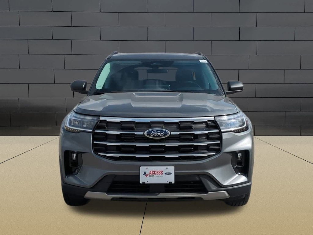 18 SPARE WHEEL & JACK KIT 18 spare tire, TRANSMISSION: 10-SPEED AUTOMATIC (STD), EQUIPMENT GROUP 200A STANDARD PACKAGE Active Badging, Black Roof-Rack Side Rails, Manual-Folding Sideview Mirrors, power and heated glass, security approach lamps and black caps, 8 USB Ports, in the first row - A port and C port in media bin, 2 C ports in center floor console; in the second row - 2 C ports; and in the third row - 2 C ports, Power Liftgate, Vinyl-Wrapped Steering Wheel, Active Noise Cancellation, Black Lower Bodyside Cladding w/Chrome Accent, ACTIVE COMFORT PACKAGE Second Row HVAC Controls, Heated Steering Wheel, Front Fascia, LED fog lamps w/silver-painted front skid plate elements and LED signature lighting, Remote Start System. 2026 Ford Explorer with Carbonized Gray exterior and Dark Space Gray interior features a 4 Cylinder Engine with 300 HP at 5500 RPM*.