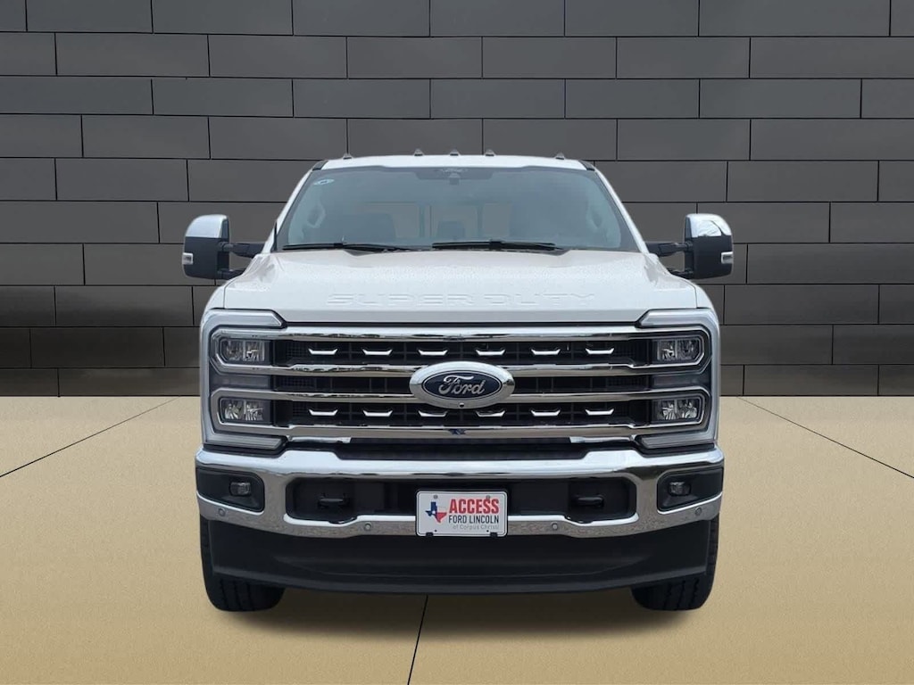 ENGINE: 6.7L 4V OHV POWER STROKE V8 TURBO DIESEL B20 manual push-button engine-exhaust braking and Operator Commanded Regeneration (OCR), 250 Amp Alternator, 34 Gallon Fuel Tank, 3.31 Axle Ratio, Dual AGM 68 AH Battery, LARIAT PREMIUM PACKAGE lane departure warning, Pro Trailer Hitch Assist, Ford Co-Pilot 360 Assist 2.0, rear view camera and reverse brake assist, Pre-Collision Assist, Automatic Emergency Braking (AEB), pedestrian detection, forward collision warning, dynamic brake support and intersection assist, Post-Collision Braking, Lane-Keeping System, lane-keeping alert, lane-keeping aid and driver alert, Front & Rear Parking Sensors, Automatic High Beam, Adaptive Cruise Control w/Stop-and-Go, lane centering and predictive speed assist, Power-Sliding Rear-Window w/Defrost, Pro Trailer Backup Assist, trailer reverse guidance, TWIN PANEL POWER MOONROOF map lights and moonroof switches, CHROME PACKAGE Unique Chrome Mirror Caps, Tires: LT275/65Rx20E BSW Automatic Transmission, Spare may not be the same as road tire, Wheels: 20 Chrome PVD Aluminum, Chrome Door Handles, 6 Angular Bright Anodized Step Bars, Chrome Exhaust Tip, SECURICODE KEYLESS ENTRY KEYPAD (DRIVERS SIDE) Integrated into the B-pillar, ELECTRONIC-LOCKING W/3.31 AXLE RATIO, TAILGATE STEP & HANDLE, TRANSMISSION: TORQSHIFT 10-SPEED AUTOMATIC SelectShift and selectable drive modes: normal, eco, slippery roads, tow/haul and off-road. 2026 Ford Super Duty F-250 Pickup with Star White Metallic Tri-Coat exterior and Black Onyx interior features a 8 Cylinder Engine with 475 HP at 2600 RPM*.