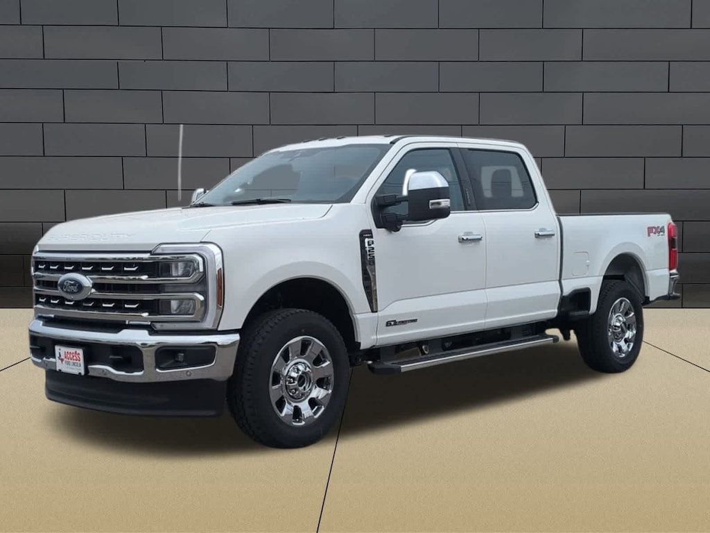 LARIAT PREMIUM PACKAGE lane departure warning, Pro Trailer Hitch Assist, Ford Co-Pilot 360 Assist 2.0, rear view camera and reverse brake assist, Pre-Collision Assist, Automatic Emergency Braking (AEB), pedestrian detection, forward collision warning, dynamic brake support and intersection assist, Post-Collision Braking, Lane-Keeping System, lane-keeping alert, lane-keeping aid and driver alert, Front & Rear Parking Sensors, Automatic High Beam, Adaptive Cruise Control w/Stop-and-Go, lane centering and predictive speed assist, Power-Sliding Rear-Window w/Defrost, Pro Trailer Backup Assist, trailer reverse guidance, CHROME PACKAGE Unique Chrome Mirror Caps, Tires: LT275/65Rx20E BSW Automatic Transmission, Spare may not be the same as road tire, Wheels: 20 Chrome PVD Aluminum, Chrome Door Handles, 6 Angular Bright Anodized Step Bars, Chrome Exhaust Tip, TWIN PANEL POWER MOONROOF map lights and moonroof switches, SECURICODE KEYLESS ENTRY KEYPAD (DRIVERS SIDE) Integrated into the B-pillar, ELECTRONIC-LOCKING W/3.31 AXLE RATIO, TAILGATE STEP & HANDLE, TRANSMISSION: TORQSHIFT 10-SPEED AUTOMATIC SelectShift and selectable drive modes: normal, eco, slippery roads, tow/haul and off-road. 2026 Ford Super Duty F-250 Pickup with Star White Metallic Tri-Coat exterior and Black Onyx interior features a 8 Cylinder Engine with 405 HP at 5000 RPM*.