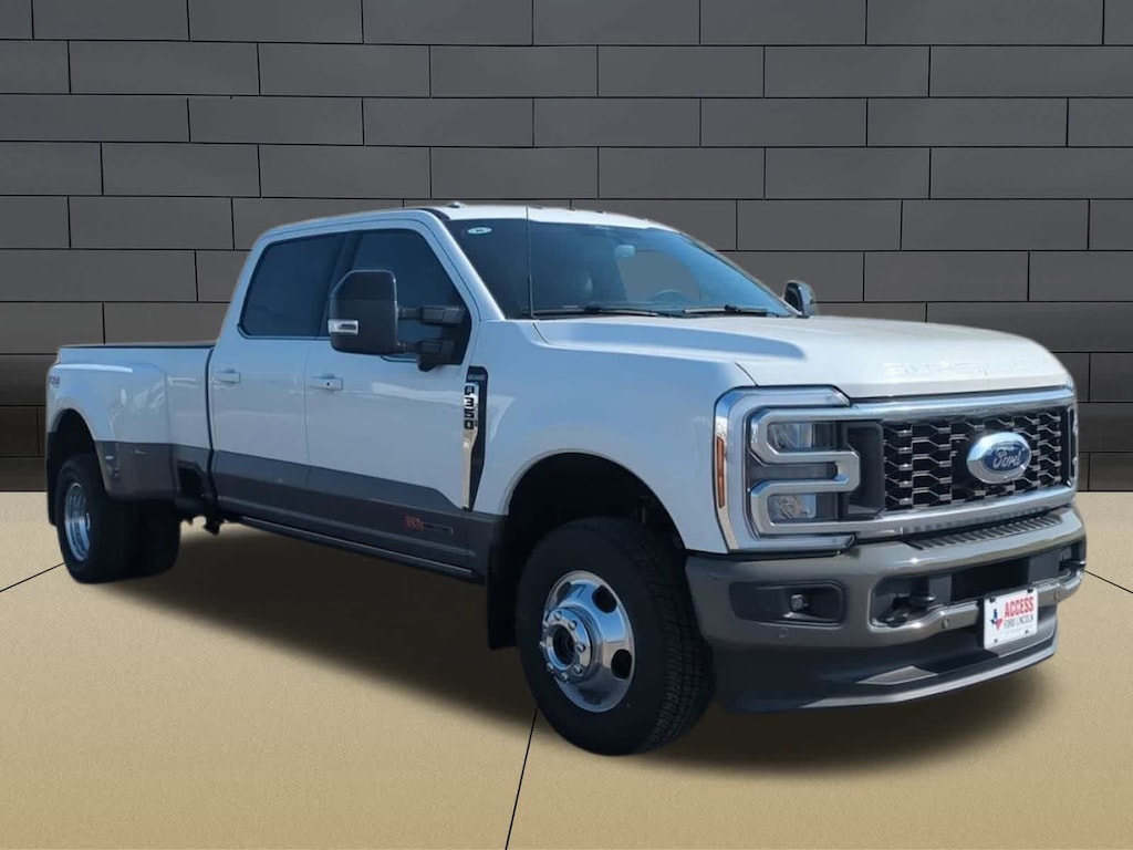 TWIN PANEL POWER MOONROOF map lights and moonroof switches, SECURICODE KEYLESS ENTRY KEYPAD (DRIVERS SIDE) Integrated into the B-pillar, LIMITED SLIP W/3.55 AXLE RATIO, TRANSMISSION: TORQSHIFT 10-SPEED AUTOMATIC SelectShift and selectable drive modes: normal, eco, slippery roads, tow/haul and off-road (STD). 2026 Ford Super Duty F-350 DRW Pickup with Star White Metallic Tri-Coat/Marsh Gray exterior and Java interior features a 8 Cylinder Engine with 430 HP at 5500 RPM*.