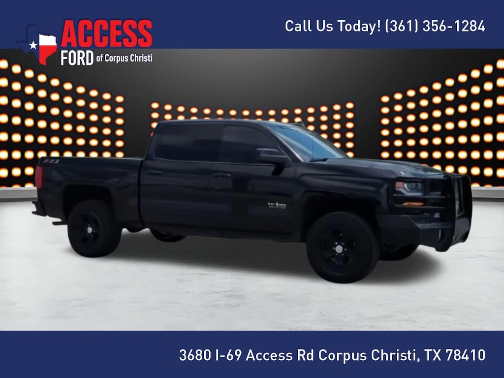 ENGINE, 5.3L ECOTEC3 V8 WITH ACTIVE FUEL MANAGEMENT, DIRECT INJECTION AND VARIABLE VALVE TIMING includes aluminum block construction (355 hp [265 kW] @ 5600 rpm, 383 lb-ft of torque [518 Nm] @ 4100 rpm; more than 300 lb-ft of torque from 2000 to 5600 rpm), TEXAS EDITION for Crew Cab and Double Cab models. On LT includes (AG1) driver 10-way power seat adjuster with (AZ3) bench seat only, (CJ2) dual-zone climate control, (BTV) Remote Vehicle Starter system, (C49) rear-window defogger, (KI4) 110-volt power outlet and Texas Edition badging (N37) manual tilt and telescopic steering column included with (L83) 5.3L EcoTec3 V8 engine.), LT PLUS PACKAGE includes (UG1) Universal Home Remote, (UD7) Rear Park Assist, (JF4) power adjustable pedals, (A48) rear sliding power window, (C49) rear-window defogger, SEATING, HEATED DRIVER AND FRONT PASSENGER Only available on Crew Cab and Double Cab models. SEATS, FRONT 40/20/40 SPLIT-BENCH, 3-PASSENGER, AVAILABLE IN CLOTH OR LEATHER includes driver and front passenger recline with outboard head restraints and center fold-down armrest with storage. Also includes manually adjustable driver lumbar, lockable storage compartment in seat cushion, and storage pockets. (STD) Includes (AG1) driver 10-way power seat-adjuster with (PCM) LT Convenience Package, (PDA) Texas Edition or (PDU) All Star Edition.), REMOTE VEHICLE STARTER SYSTEM Includes (UTJ) Theft-deterrent system.), AUDIO SYSTEM, CHEVROLET MYLINK RADIO WITH 8 DIAGONAL COLOR TOUCH-SCREEN, AM/FM STEREO with seek-and-scan and digital clock, includes Bluetooth® streaming audio for music and select phones; USB ports; auxiliary jack; voice-activated technology for radio and phone; and Shop with the ability to browse, select and install apps to your vehicle. Apps include Pandora, iHeartRadio, The Weather Channel and more. (STD), TRANSMISSION, 6-SPEED AUTOMATIC, ELECTRONICALLY CONTROLLED with overdrive and tow/haul mode. Includes Cruise Grade Braking and Powertrain Grade Braking (STD). 2018 Chevrolet Silverado 1500 with Black exterior and Jet Black interior features a 8 Cylinder Engine with 285 HP at 5300 RPM*.